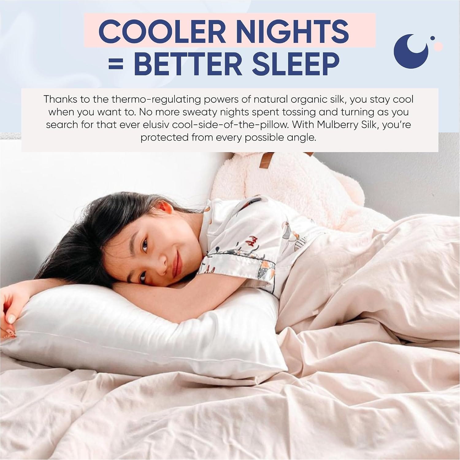 Thanks to the natural thermoregulating properties of Mulberry silk, the Blissy Silk Pillowcase keeps you cool in summer and warm in winter. This breathable material allows air circulation and helps regulate your body temperature, ensuring that you sleep comfortably without overheating. Whether you live in a hot climate or enjoy a cooler bedroom, this pillowcase adjusts to provide a comfortable and restful sleep environment.