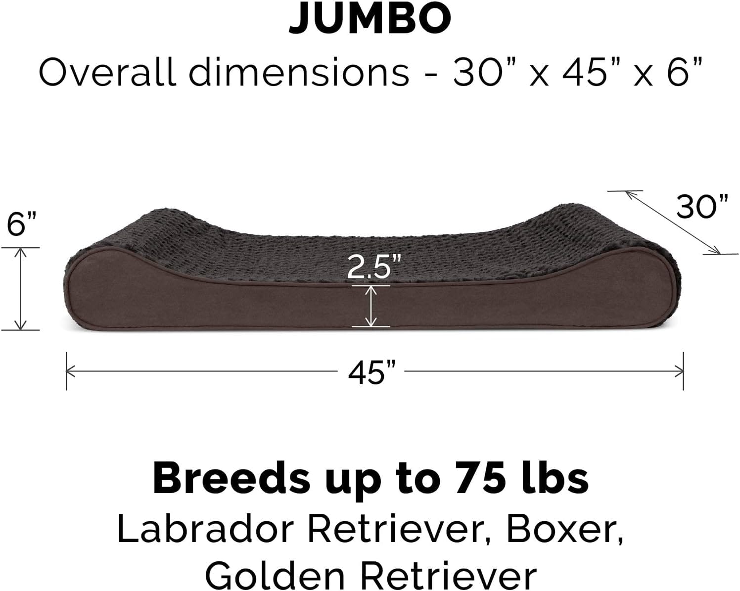 • Dimensions: Varies by size; e.g., Jumbo Plus: 44" x 35" x 6"