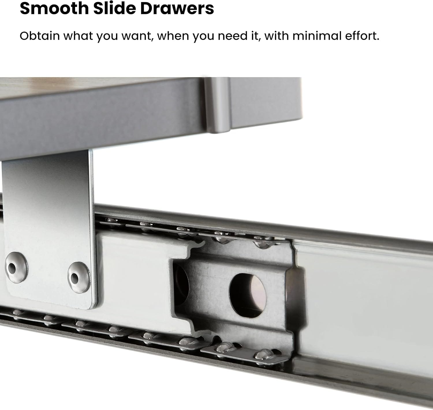 Built to last, the heavy-duty steel frame supports up to 88 lbs, ensuring stability and strength for daily use. The smooth-glide ball-bearing slides make pulling out and pushing in the organizer effortless, even when fully loaded. This feature ensures quick access to your items and prevents jamming, making your kitchen workflow faster and more efficient.