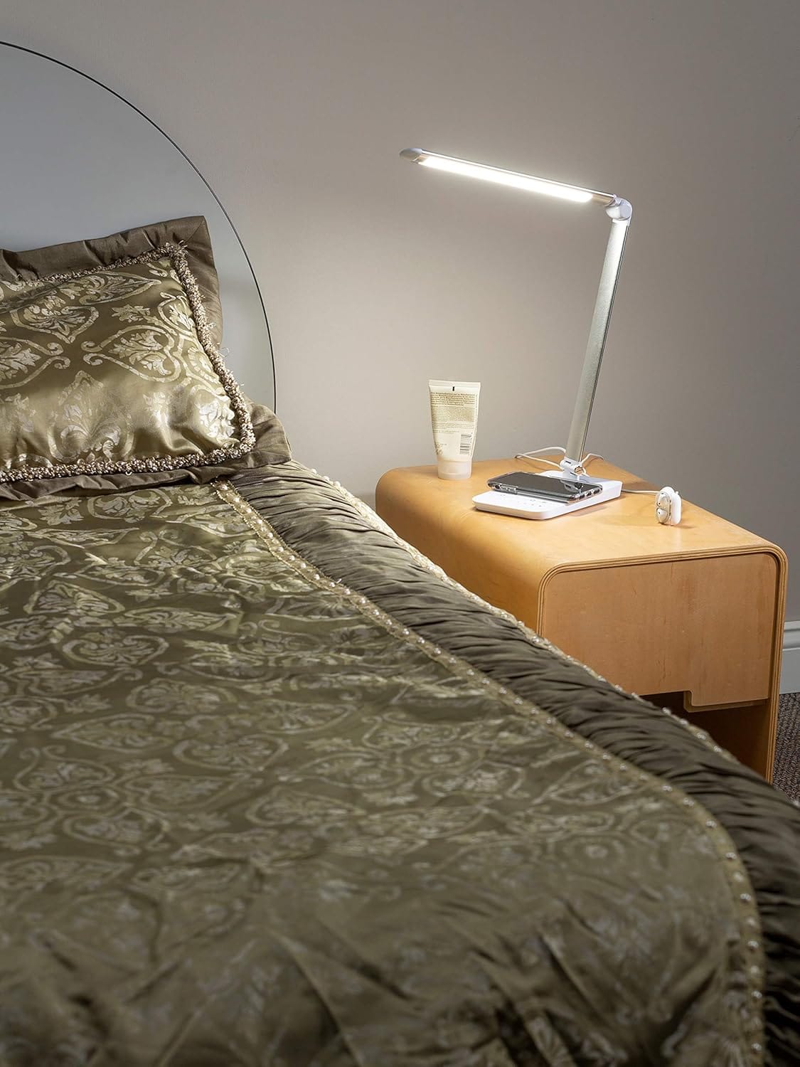- Wireless Charging Pad: Qi-compatible phones charge effortlessly on the lamp base.