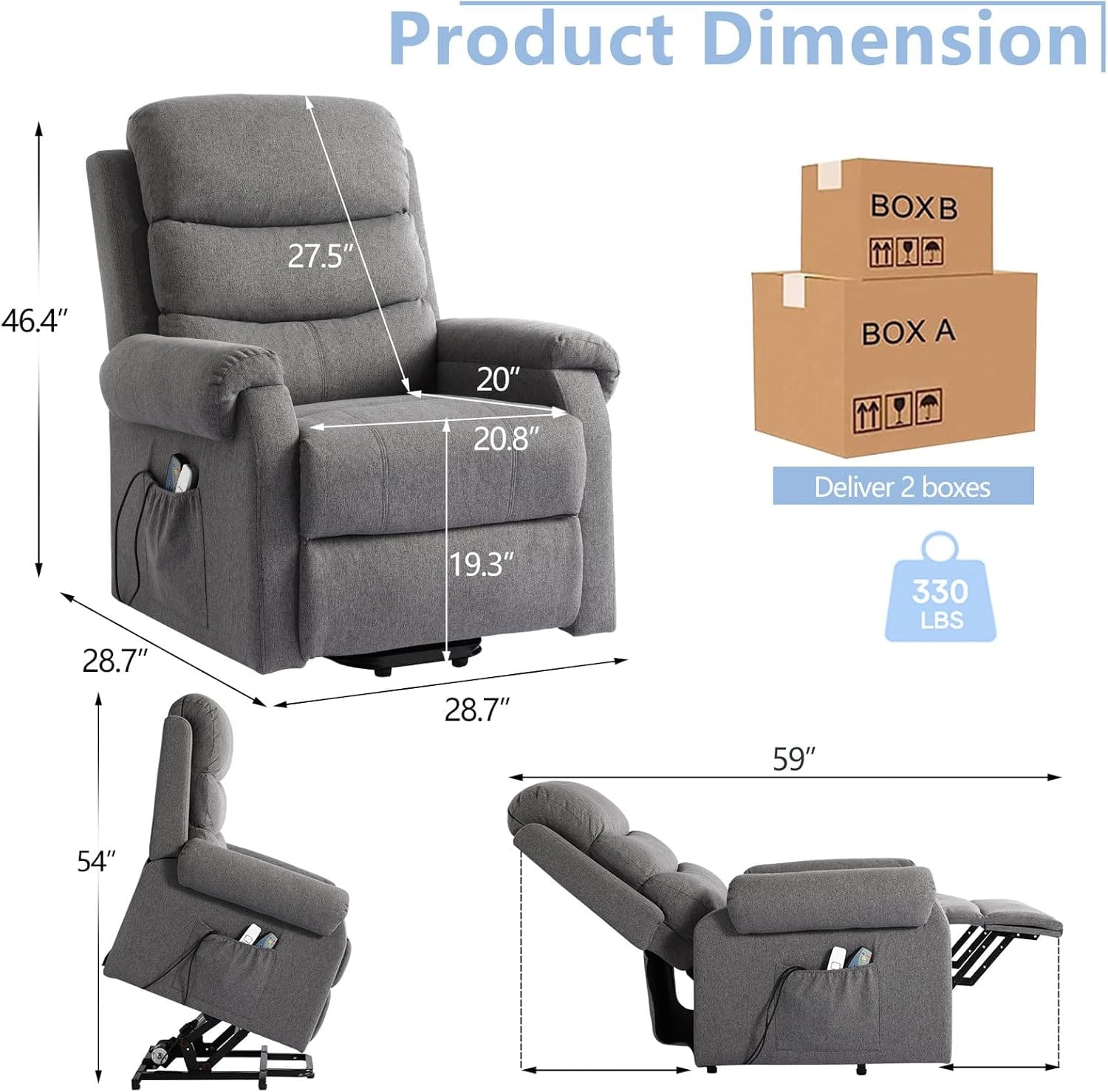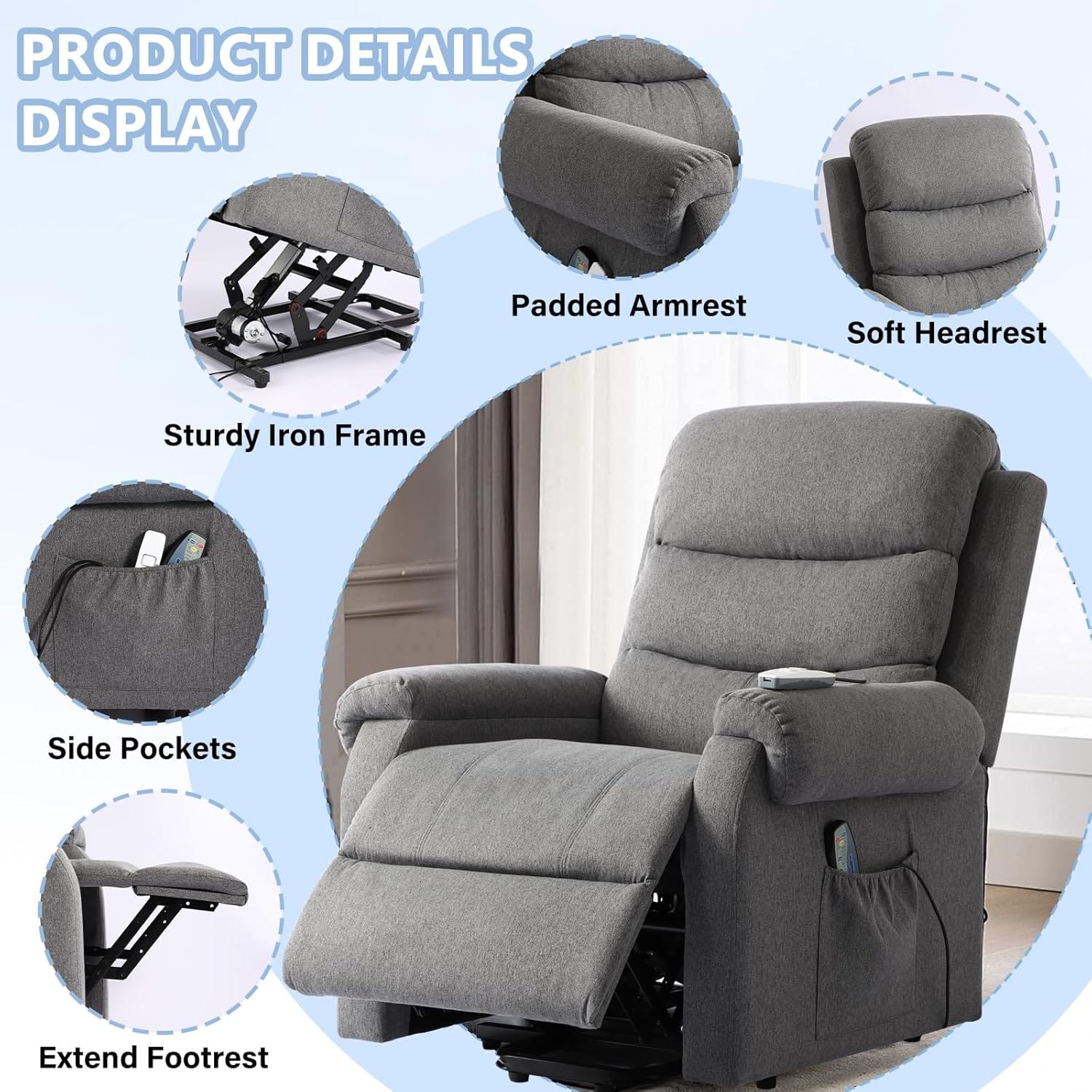 SENIFIS Power Lift Recliner Chair, Linen Fabric Lift Chair for Elderly with