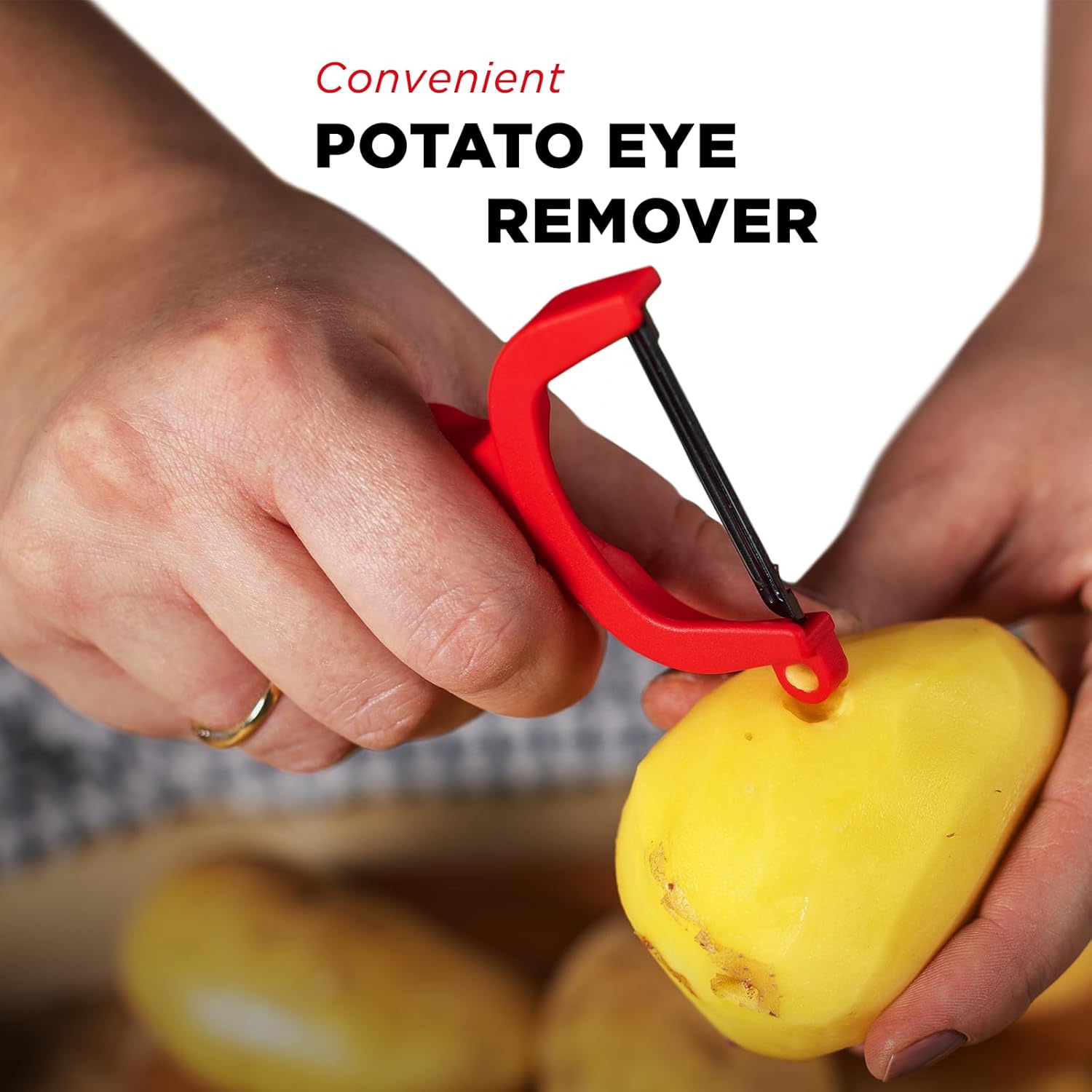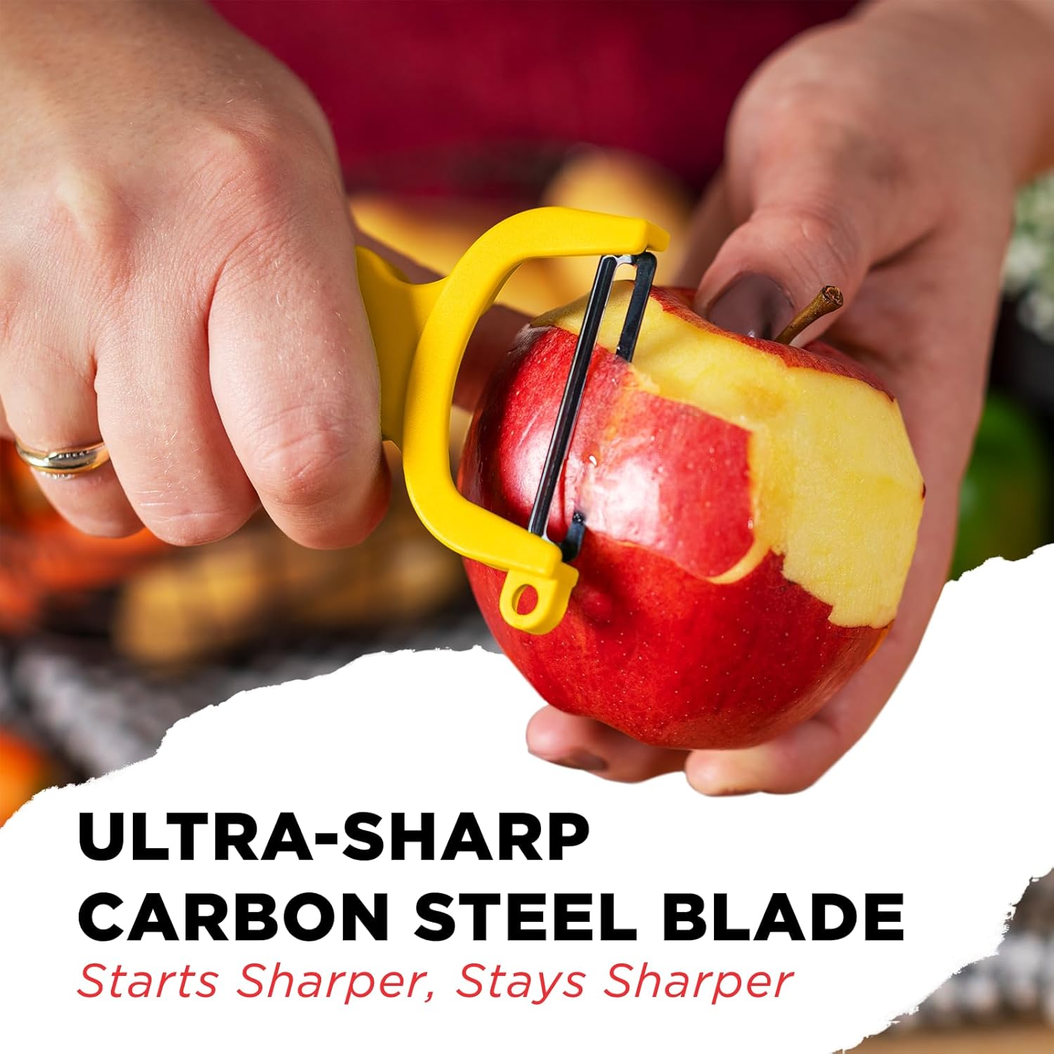 • Razor-Sharp Carbon Steel Blades: These straight blades are made from high-carbon steel, maximizing smoothness and minimizing waste—ideal for both a fruit peeler and potato peeler.