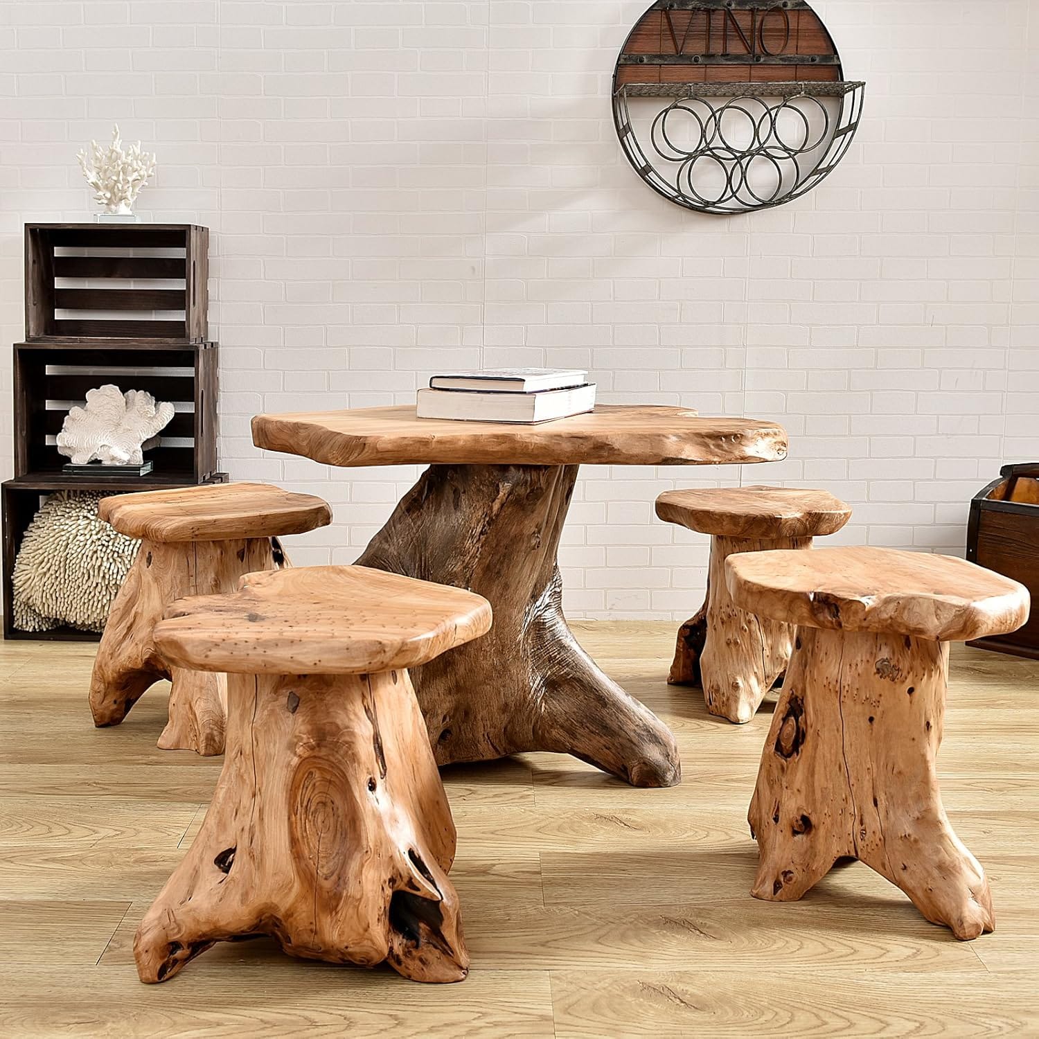 With its compact 14-inch height, this cedar stump stool serves multiple functions: