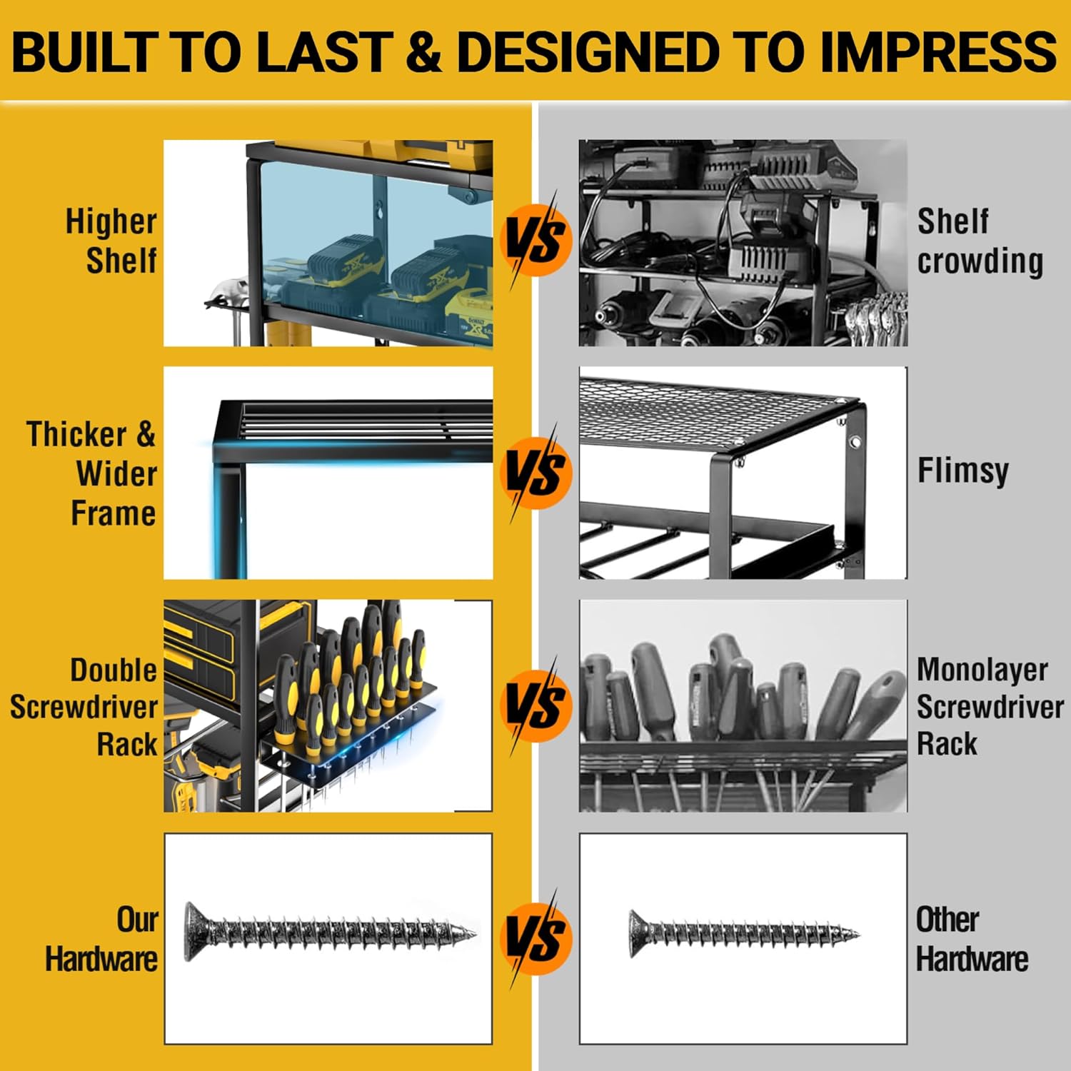 Optimisez l’organisation de votre atelier ou garage avec le YYR Heavy Duty Power Tool Organizer, un organisateur d’outils électrique mural robuste conçu pour ranger et charger vos outils sans fil. Fabriqué en acier industriel épaissi, il offre une solidité exceptionnelle et une capacité de charge supérieure aux modèles classiques.